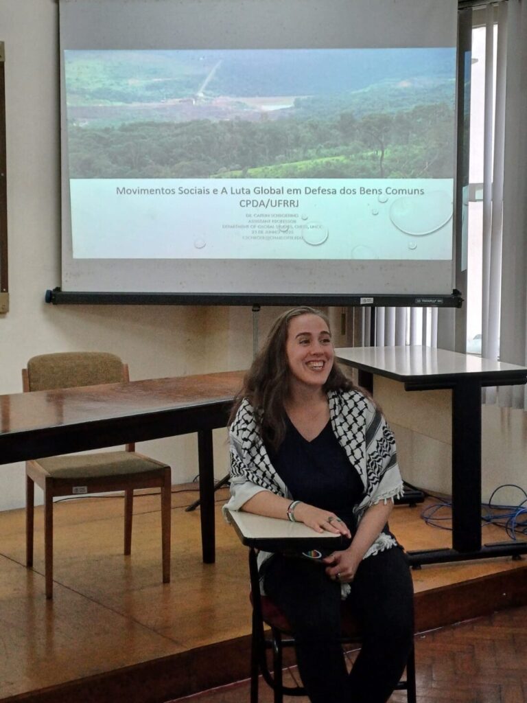 Photo of the author, Caitlin Schroering, after giving a talk about her research in Rio de Janeiro, Brazil (2025). Source: Caitlin Schroering.