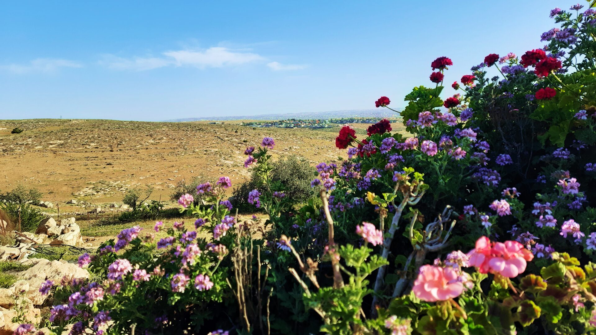 A Bedouin woman’s flowers in the Palestinian countryside. Credit: ISM