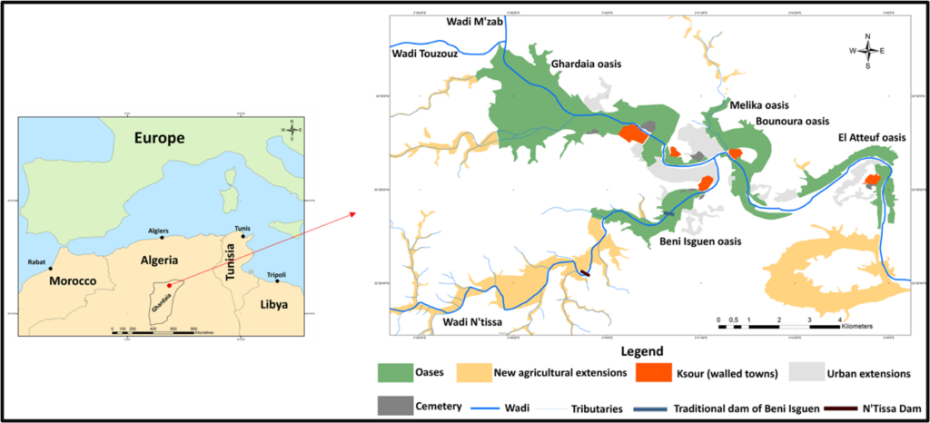 Figure 1: Map of the M’zab valley and their oases. Source: Meriem Farah Hamamouche.