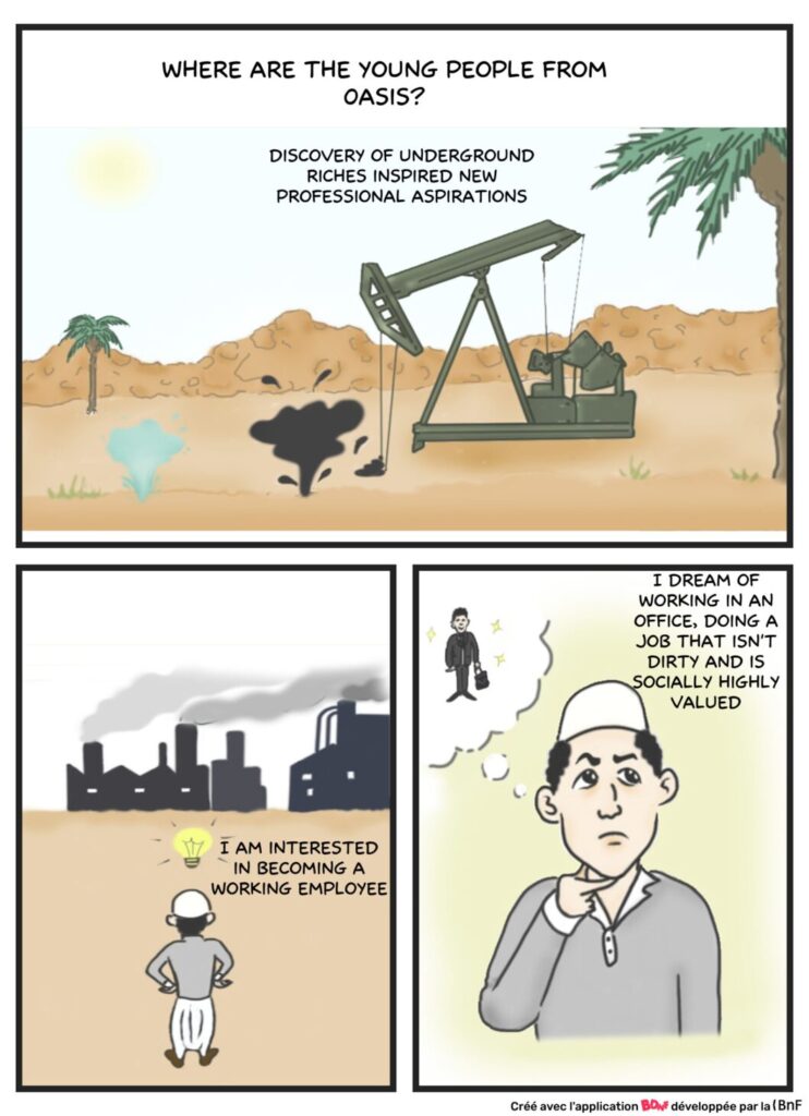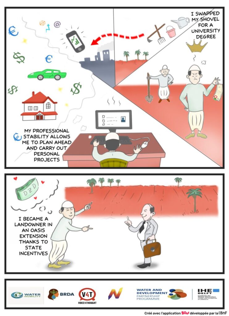 “In their eyes, being an agricultural labourer was synonymous with lack of ambition, failure, instability, no future and low social status… They would have preferred me to get a land plot outside the oasis, or to work in the administration or in the oil industry”.