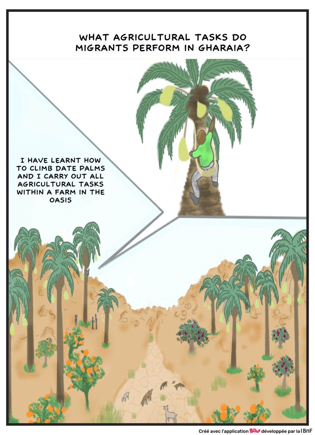 Drought, political and economic instability and armed conflict in the sub-Saharan region, since the 2000s, intensified after 2011, have increased migration toward Algeria. Young migrants leave their home countries to settle temporarily in Algeria and work to support their families back home, but also to accumulate the financial resources needed to carry out their future projects. In Ghardaïa, most foreign agricultural workers are Malian.